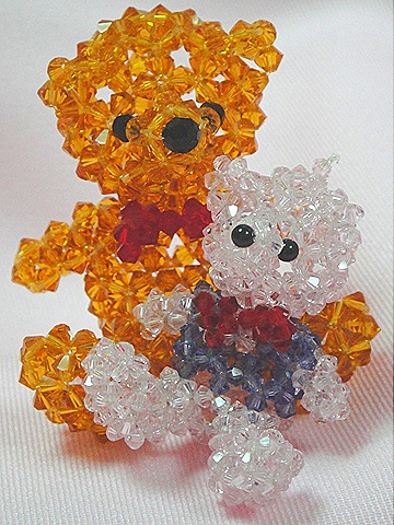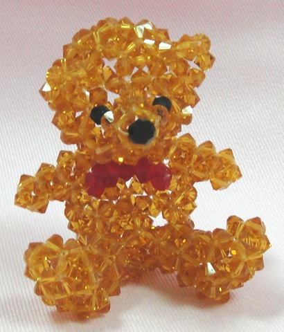 說到「泰迪熊」,應該沒有人不喜歡他可愛的模樣吧,當然儀婆婆也不例外,所以就在接觸串珠這玩意沒多久後就幫自己串了一隻,這隻泰迪熊是以SWAROVSKI(施華洛世奇)4mm的水晶所串成,本來滿心歡喜的串完拿到家人面前現寶,沒想到居然被家裡的人唾棄,認為顏色不好看,還說很像大便色,當下讓我馬上多了三條線,其實當初會選琥珀色是因為總覺得泰迪熊不就是這個顏色嗎?而且我怎麼看都不覺得難看呀!