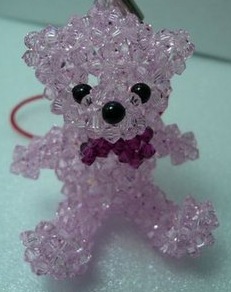不過這隻水晶「泰迪熊」因為體形有點大,掛在手機上覺得有些不方便,於是儀婆婆決定在串隻小的,這次儀婆婆把珠珠改成3mm的,至於在顏色方面因為有了前面的教訓,所以這次選了個只要是女生都會喜歡的粉紅色,看是不是嬌小可愛呀。這隻粉紅泰迪熊可是跟在我身邊快三年了喔,一開始並沒有穿衣服,後來在修改的時候才幫她加了個小背心,沒想到前幾天在跟同事聊天時,又被我把他從手機上扯下來,我想是他在提醒我要變裝了。看官們!請拭目以待粉紅泰迪熊幾天後將會以新的服裝與大家見面喔。