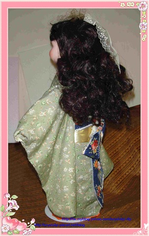 看到主題,想必大家應該已經猜到這個娃娃一定是穿和服,這個娃娃的頭和睡娃可說是一模一樣,只不過頭髮顏色換了,衣服換穿為和服而已,當初縫他這一身和服也費了一番工夫喔,尤其是對針線一點都不擅長的儀婆婆,應該算是不可能的任務吧,不過手工粗細先不談,儀婆婆真的做到了,而這也是目前儀婆婆剩下的兩個娃娃之一(另一個當然就是睡娃囉). 現在就來瞧瞧她的模樣吧.