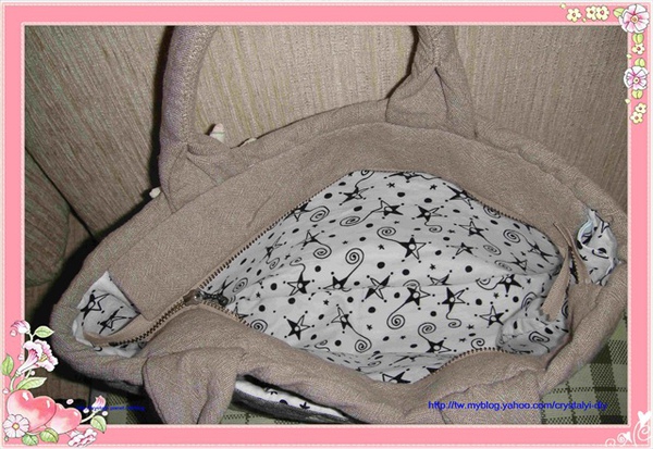 這是袋口,因為怕進度跟不上所以就先行把他縫上去啦,結果沒想到上課時老師居然說下次才要發新的材料包,這下可好,包包已經完成所以這天就這樣四處晃晃,輕鬆愉快得過了一天啦.