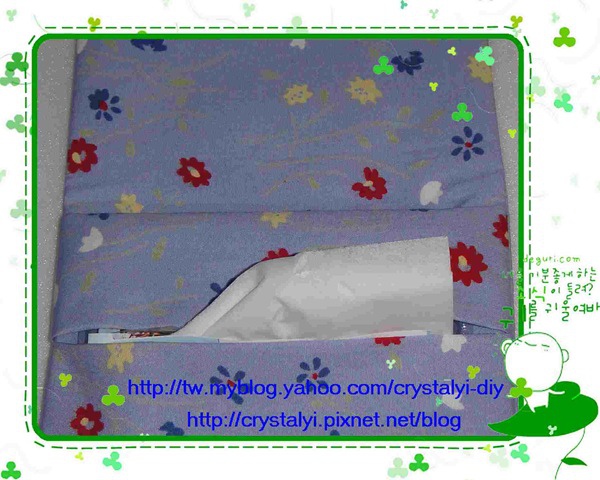 步驟六 : 兩旁車缝翻回正面用熨斗燙平後,,即是一個好用的面紙套了