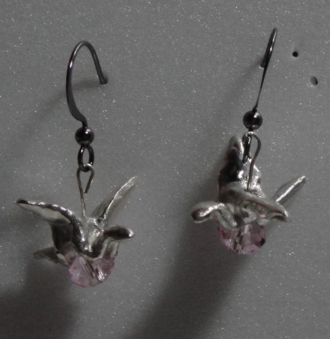 眼看的課程就快結束了,手邊卻還有一些黏土,如果不把它用完,豈不是浪費了,所以決定來點不一樣的 這對耳環是利用折紙的技巧,再將銀黏土一層一層的塗上去,直到一定的厚度後才進烤箱,雖然有些費時,不過真正難處理的還是在最後的拋光,因不是平面的,所以不好拋,再加上儀婆婆的懶惰病,所以作品看起來不夠亮.就將就一點囉