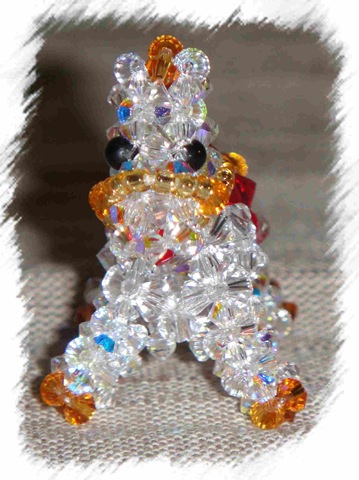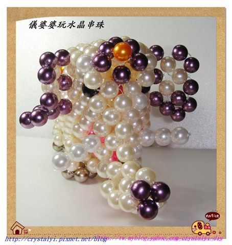 誰說串珠一定要用SWAROVSKI 的水晶,最近一婆婆就發現一種還蠻亮的水晶,那就是轉運水晶啦。轉運水晶的形狀類似地球珠,只不過她是扁的。初次看到這種珠子覺得還蠻亮的,想說串出來效果不知如何,於是先買了約一隻泰迪熊的珠子(10mm)回去,沒想到串出來的效果並不會差到哪,於是沒多久又買了12mm的珠子又串了一隻,儀婆婆左看又看都覺得這種扁珠串出來的效果還蠻好的,也因為這樣又陸續串了8mm與6mm的泰迪熊,現在看看家裡已經快要變成熊熊樂園啦,不過一婆婆還要再串一隻14mm的,因為這種珠子是從6mm一直到14mm,所以要串完14mm的才算尺寸齊全啦,哈哈~~ 儀婆婆是不是有點瘋狂呀。