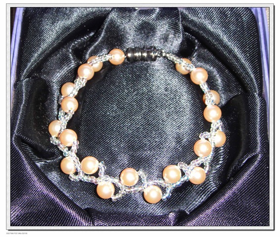 好友箴的生日快到了,儀婆婆串了條手鍊想送她,這條手鍊是用SWAROVSKI 的水晶珍珠與日本玻璃珠組成的,因外一顆一顆的珍珠看起來有點像葡萄,所以儀婆婆叫他葡萄串,看著這條手鍊感覺好像有點單調,於是盤算著是否應該再串條項鍊,把它湊成一套,這樣看起來應該比較有份量,朋友們可以給個建議嗎?